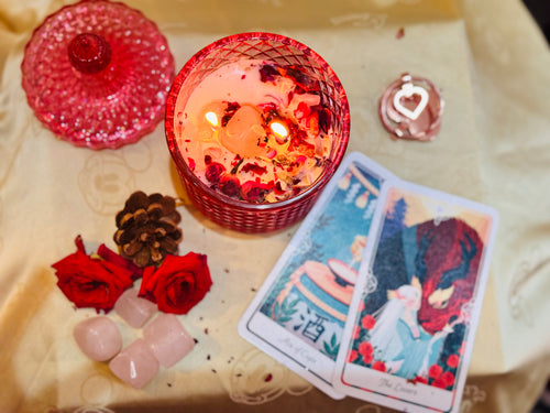 Infused with Rose Quartz, this candle draws soulmates, new connections and reunion your way. Light the Love Magnet Candle to attract love, deepen connections, and reignite passion. Infused with Reiki energy and Rose Quartz crystals, it opens the heart chakra, drawing romance, admiration, and emotional closeness. Perfect for reuniting with an ex, attracting a soulmate, or strengthening an existing bond, its enchanting aroma creates an irresistible aura around you. Use during meditation, rituals, or anytime you want to manifest love and magnetic attraction effortlessly. Let the flame guide your heart toward connection and desire. 💖 Fragrance Notes: Floral amber, fresh rose. Crystal: Lightcoded & Infused Rose Quartz Burn Time: Long-lasting for a consistent, soothing fragrance. Infused with Healing Energies of Love & Compassion | Conceptualized in Dubai | Crafted with Love