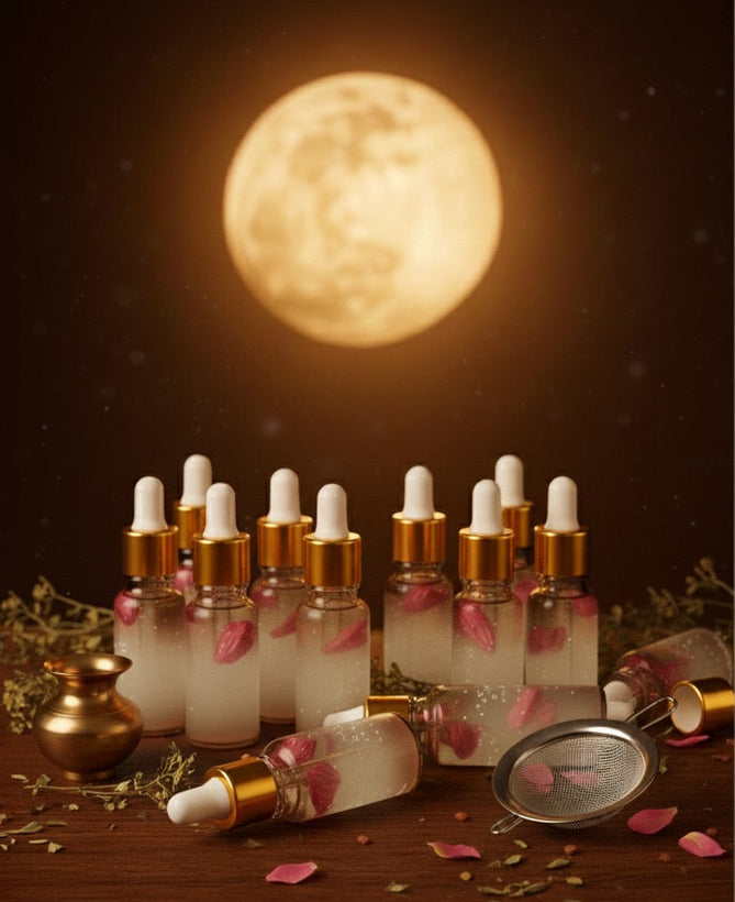 Infused under the power of the Purnima Moon, this blend works on the mind, body, and aura β supporting emotional stability, deeper sleep, and a lighter, calmer nervous system.
